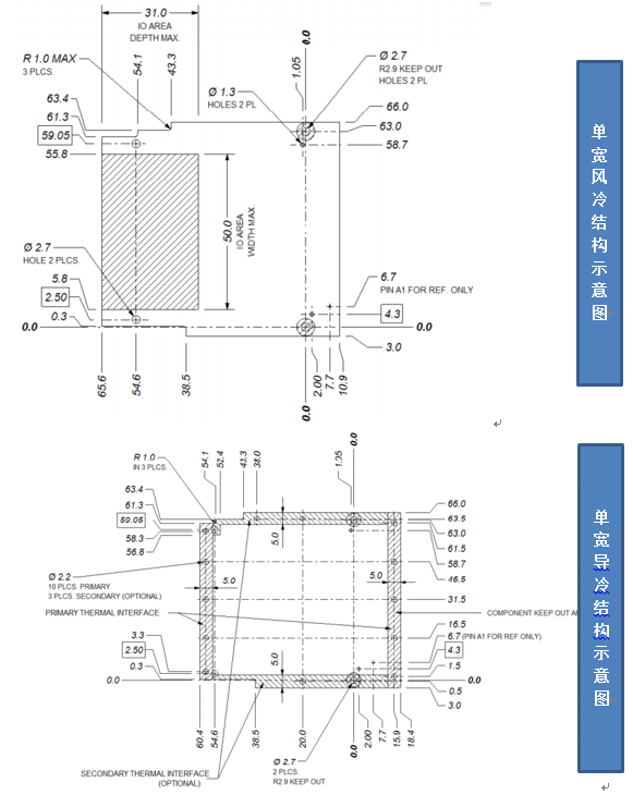 IO区域、前面板支撑和连接器支架在载板上的区域不能放置任何元器件,有过孔也必须做绝缘处理。